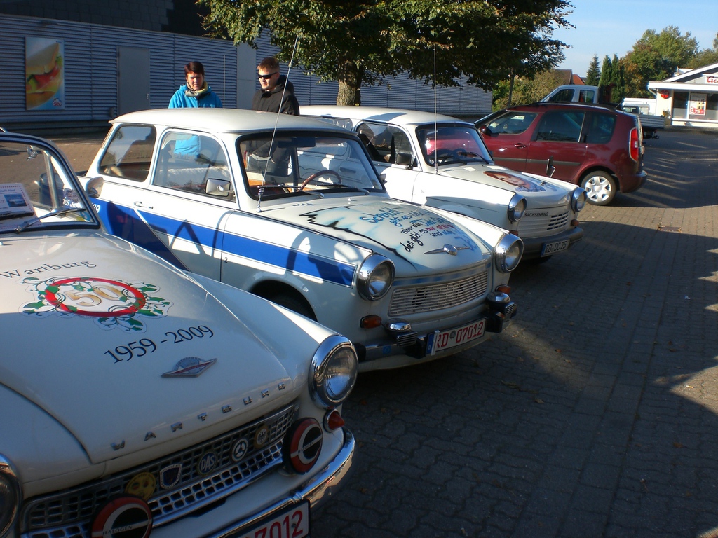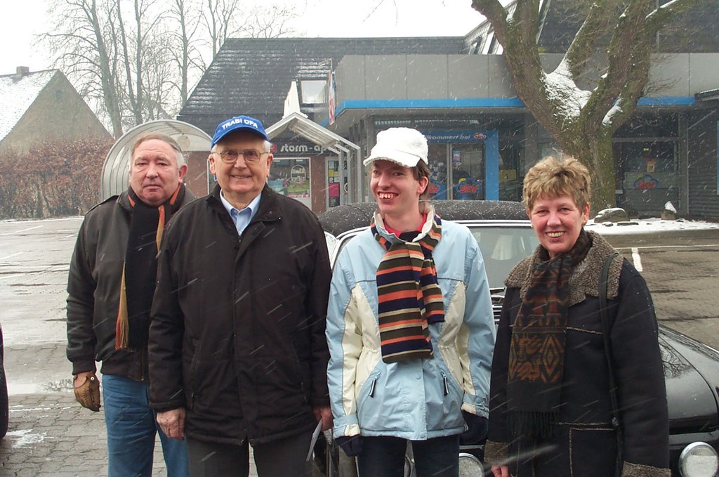 Nach ein paar Tagen hatte ich Erfolg: Die Familie wohnte in der Theodor Storm Straße in Hohn. Als die Tür sich öffnete, sagte ich: Guten Tag, Schmidt ist mein Name, ich habe ihren Trabi gekauft. Die Frau und ihre 4 jährige Tochter waren sehr erstaunt und konnten es gar nicht fassen. Ich wurde sehr freundlich aufgenommen, man bot mir Kaffee an und wir hatten uns viel zu erzählen.